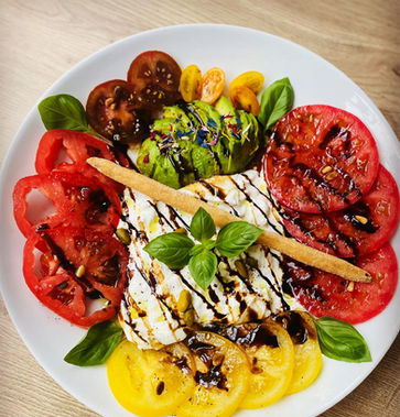 Farbenfroher Caprese Salat, hausgemachtes Hummus, feinstes Rindstatar, Gemischter Salat mit Mangodressing, ofenfrische Pinsa's und vieles mehr!